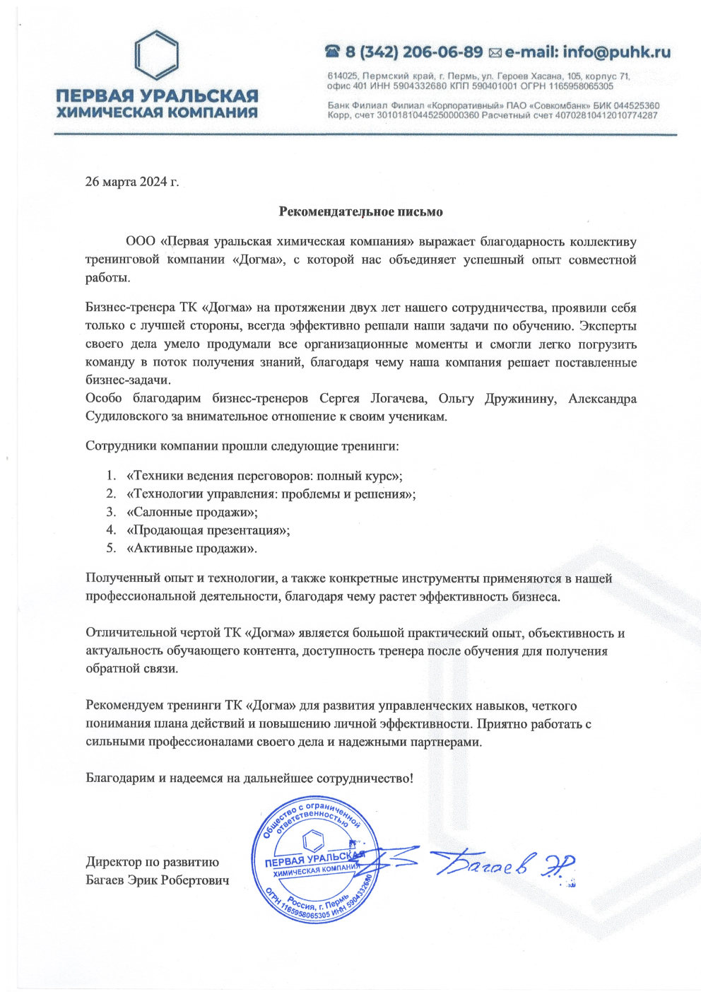 …От себя хочу добавить, что компания «Догма» заслуживает самых высоких рекомендаций. Я бы однозначно рекомендовал ее всем, кто стремится к развитию и совершенствованию управленческих навыков.